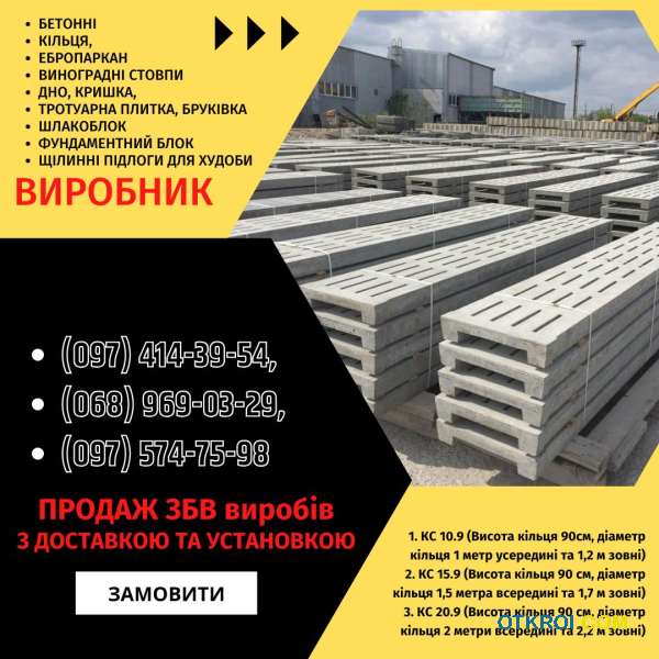 Шлакоблок, кільця для каналізації, бордюри, днища, люки, стовпи, європаркани - Объявление без фотографий